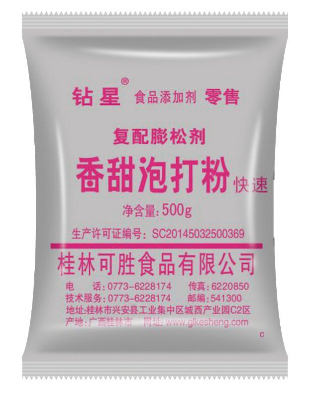 桂林可勝食品有限公司是一家專業生產食品添加劑復配膨松劑(泡打粉)系列產品的獨資企業,1999年建廠,占地面積四萬多平方米(60畝地),生產基地位于以千古靈渠而文明的十大魅力名鎮之一 桂林市興安縣,青山綠水環繞,自然條件優越。旁依興安縣高速路口,交通便利。本企業產品衛生管理機構健全,設有獨立的、完善的質量管理體系和新產品開發部門及檢測機構;擁有先進的檢測設備和生產設備。企業秉承“狠抓質量,樹立品牌,顧客至上 ,尊信守約”的經營理念,致力于打造同行業一流企業。真誠歡迎社會各界朋友光臨指導,洽談合作。...